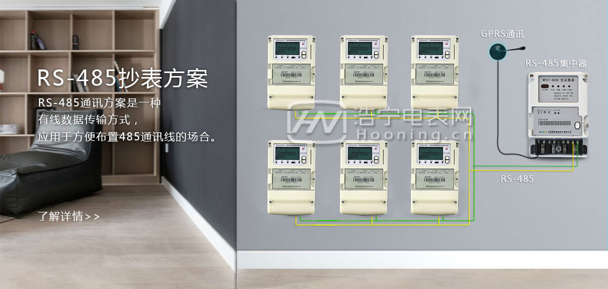 RS485通訊口抄表,配合抄表系統,可抄讀電表的各項電量數據。并支持DL/T645-1997和DL/T645-2007多功能電能表通訊規約。